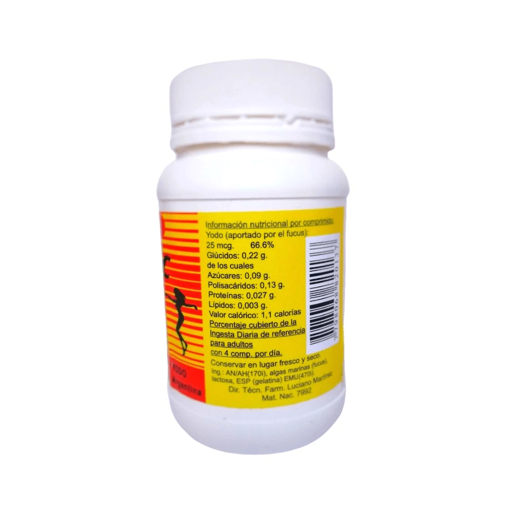 No consumir en caso de embarazo, lactancia, niños o si esta bajo tratamiento con medicación relacionado con el funcionamiento de glándula tiróides.